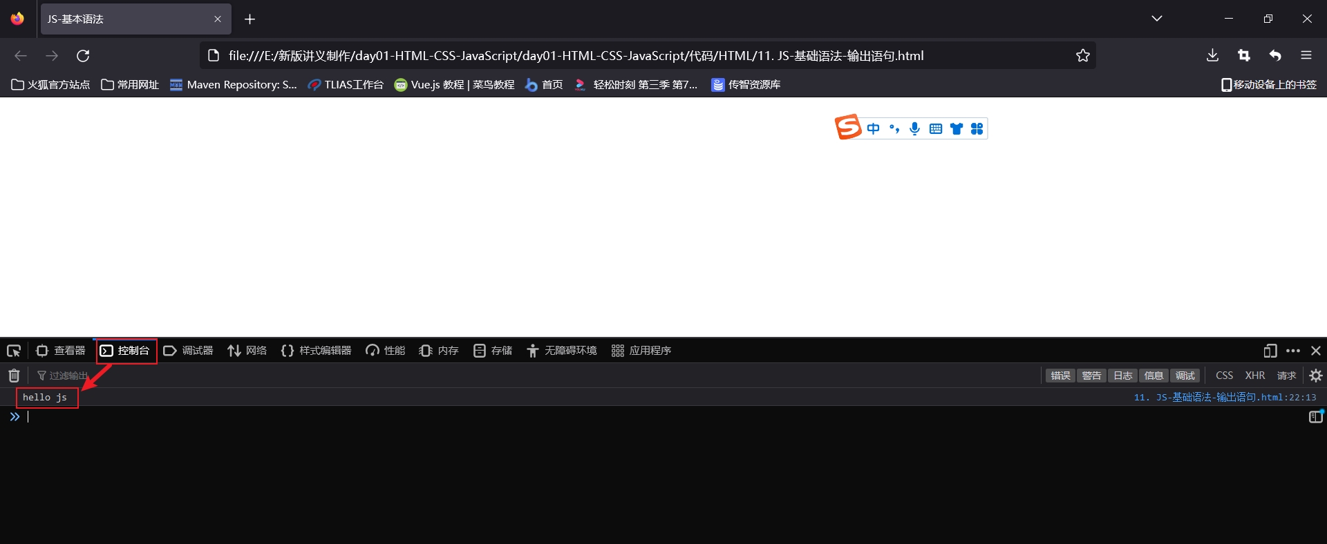 第一步:在VS Code中创建名为 11.JS-基础语法-输出语句.html的文件