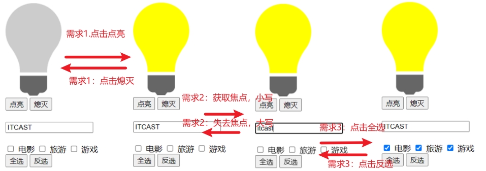 通过代码/js效果演示提供资料进行效果演示,通过浏览器打开,我们点击主题5按钮,页面的主题发生了变化,所以js可以让我们的页面更加的智能,让页面和用户进行交互。