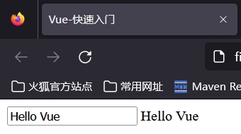 </script>浏览器打开,运行结果如下:我们发现,自动打印了这句话,因为页面加载完成,vue对象创建并且完成了挂在,此时自动触发mounted所绑定的钩子函数,然后自动执行,弹框。