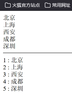 </html>然后分别编写2种遍历语法,来遍历数组,展示数据,代码如下: