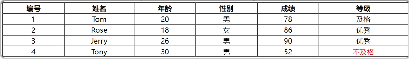 我们前端页面中的数据,如下图所示的表格中的学生信息,应该来自于后台,那么我们的后台和前端是互不影响的2个程序,那么我们前端应该如何从后台获取数据呢?因为是2个程序,所以必须涉及到2个程序的交互,所以这就需要用到我们接下来学习的Ajax技术。