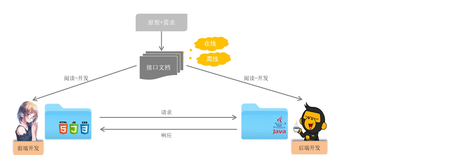 如下图所示前端资源被浏览器解析,但是前端页面上缺少数据,前端可以通过Ajax技术,向后台服务器发起请求,后台服务器接受到前端的请求,从数据库中获取前端需要的资源,然后响应给前端,前端在通过我们学习的vue技术,可以将数据展示到页面上,这样用户就能看到完整的页面了。此处可以对比JavaSE中的网络编程技术来理解。