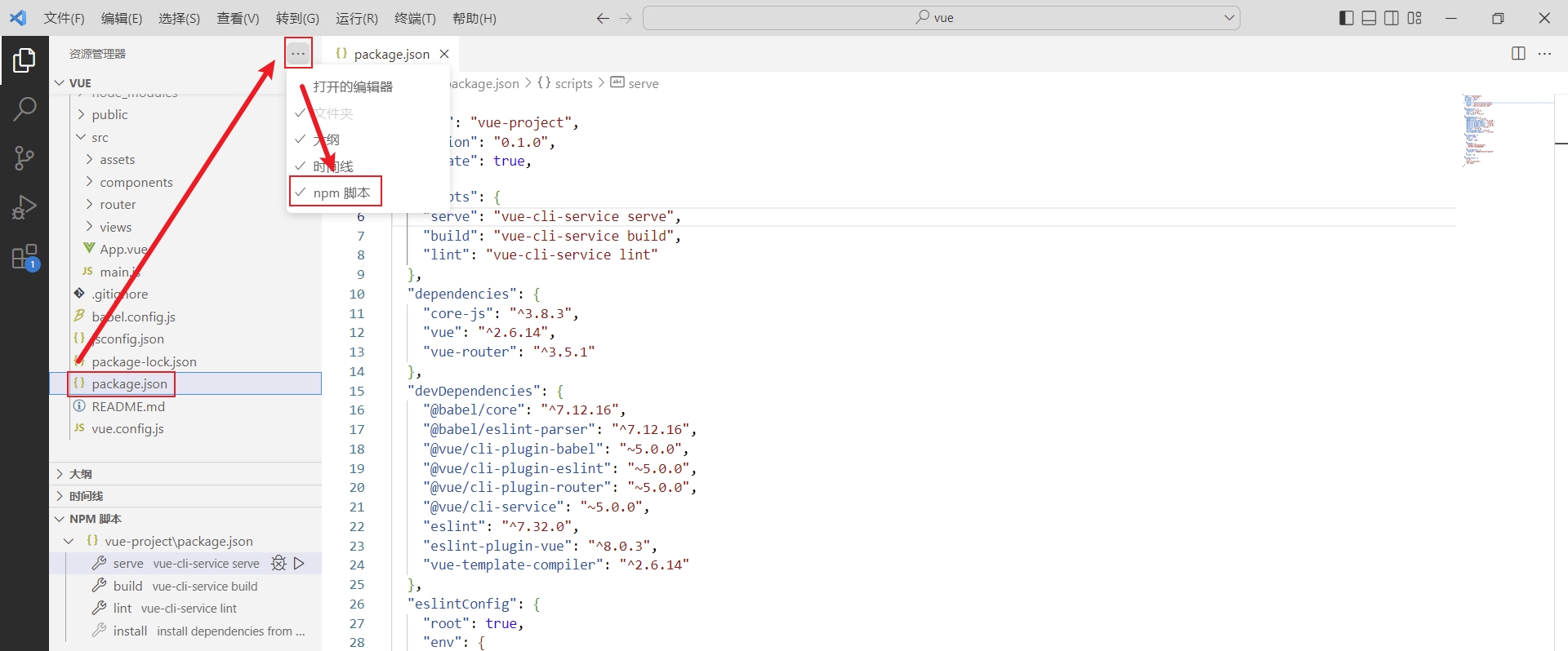 我们直接通过VS Code的NPM脚本中提供的build按钮来完整,如下图所示,直接点击即可: