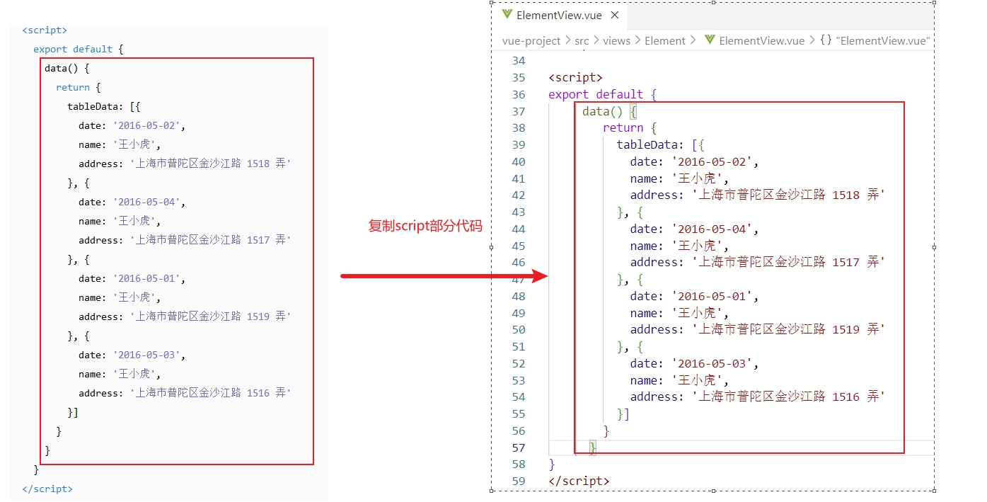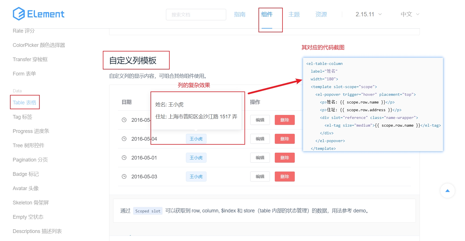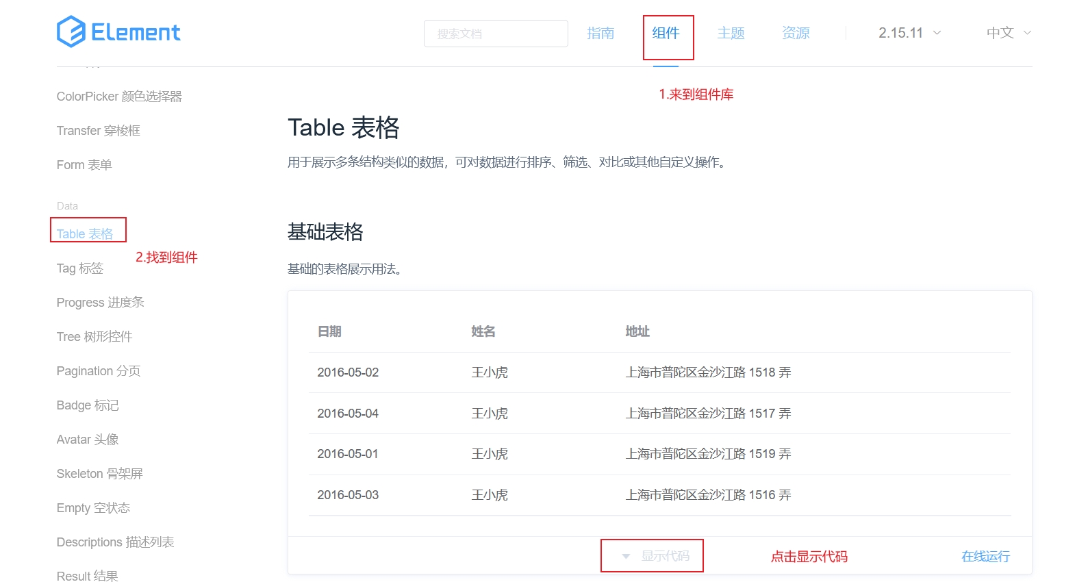 首先我们来到ElementUI提供的表格组件,找到如下示例: