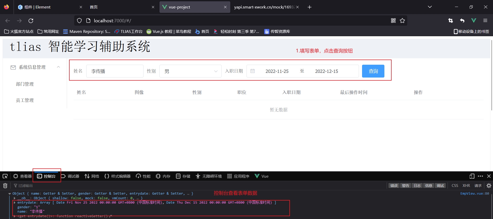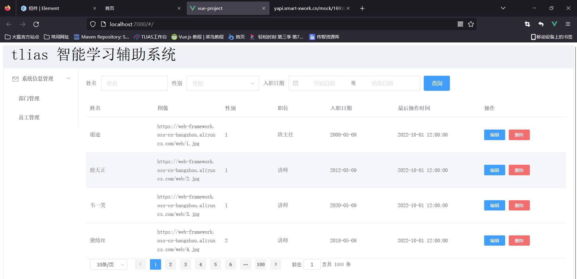 1669139756551 其中数据是来自于后台程序的,地址是:http://yapi.smart-xwork.cn/mock/169327/emp/list
