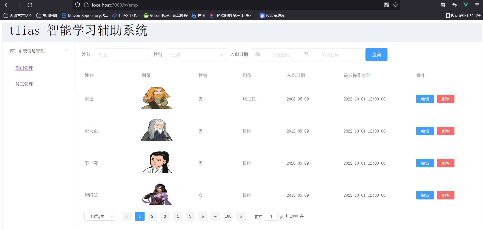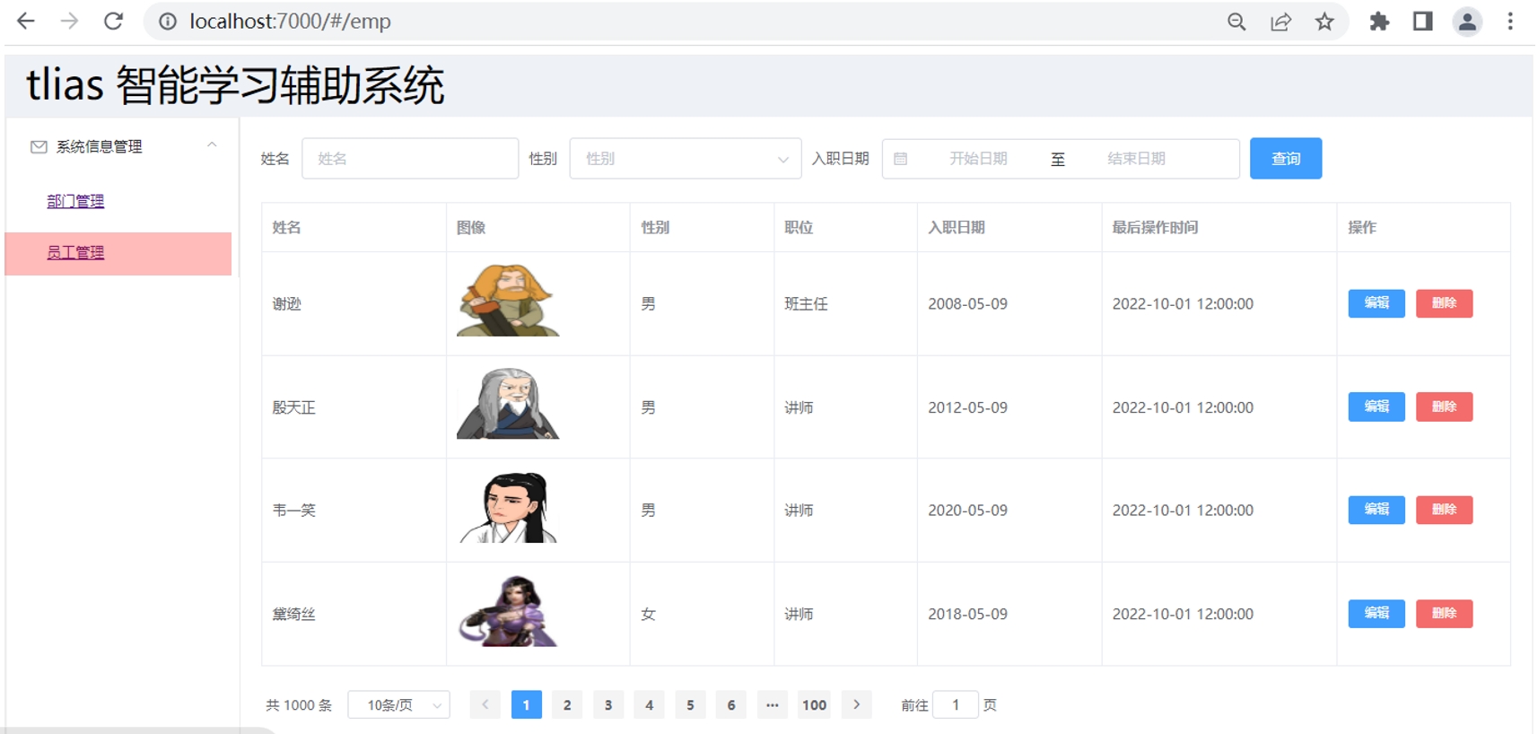 ]此时我们打开浏览器,访问http://localhost:7000 发现直接访问的是emp的页面,并且能够进行切换了,其具体如下图所示:
