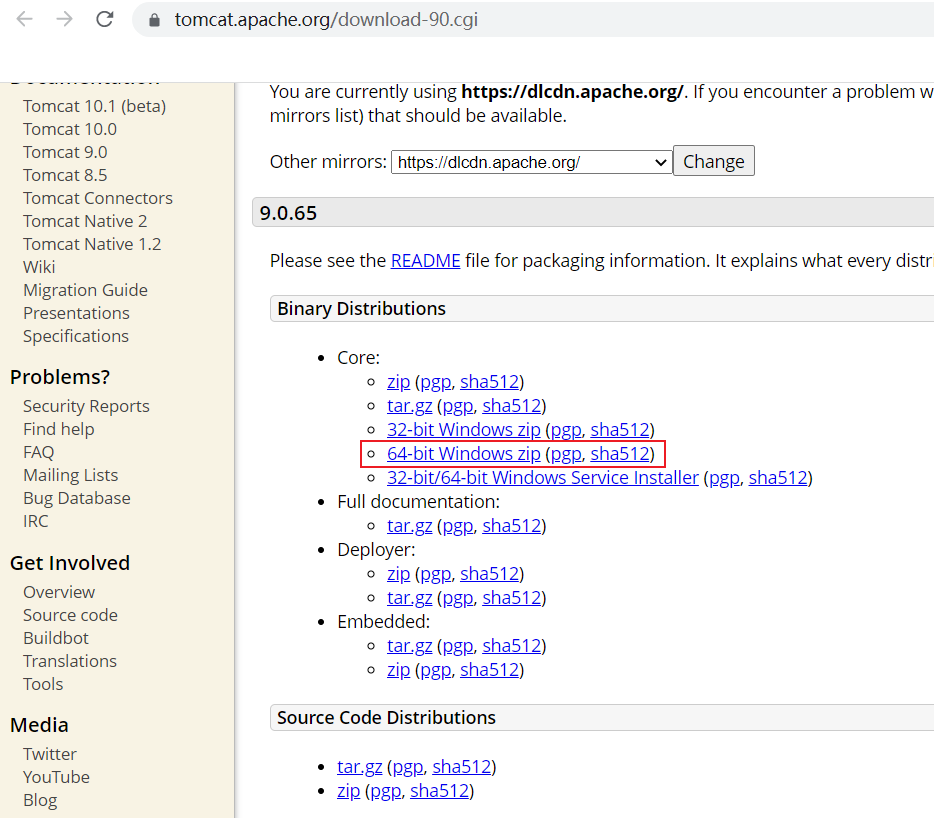 直接从官方网站下载:https://tomcat.apache.org/download-90.cgi