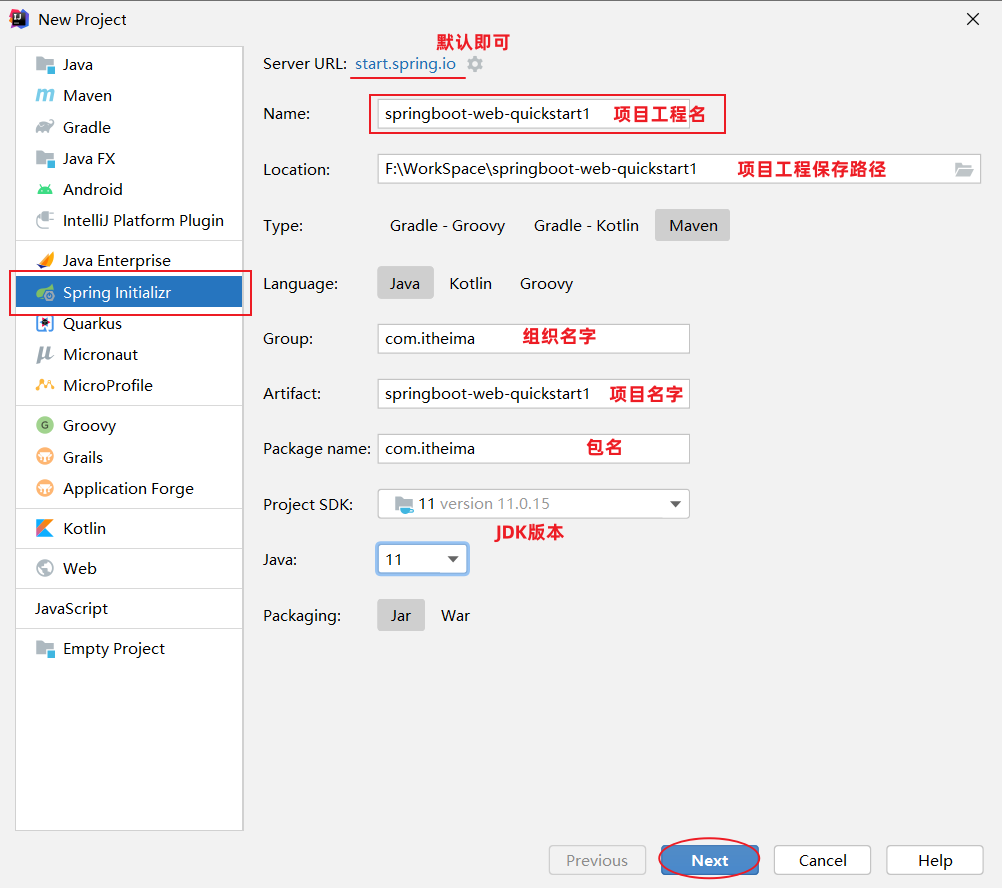 第 1 步:创建 SpringBoot 工程项目