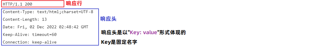 包括:响应行 、响应头 、响应体