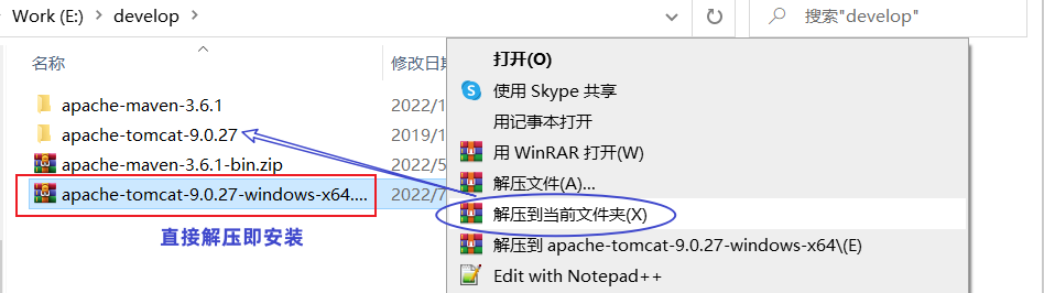 在 E 盘的 develop 目录下,将