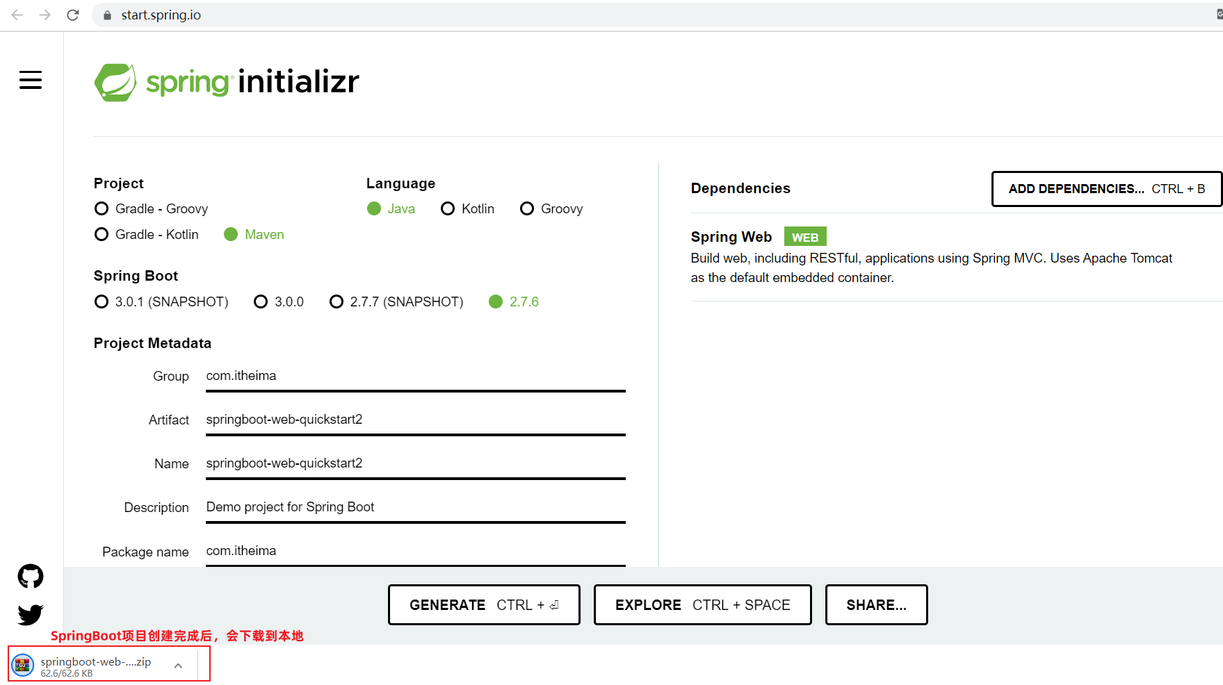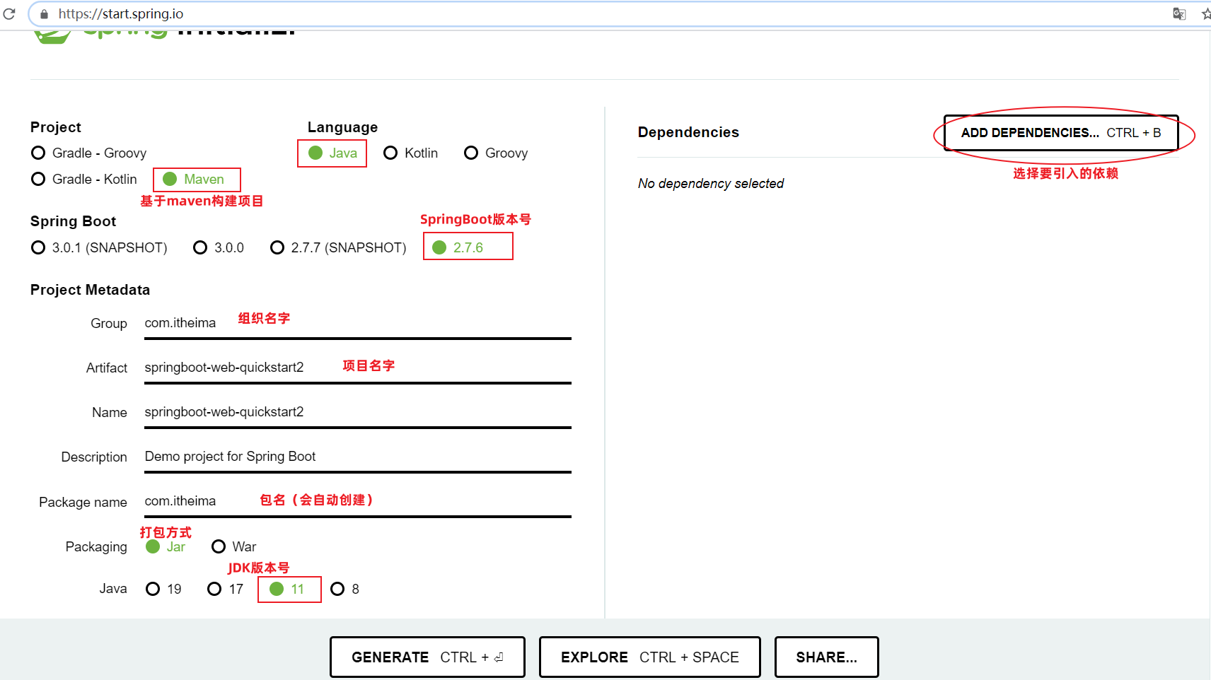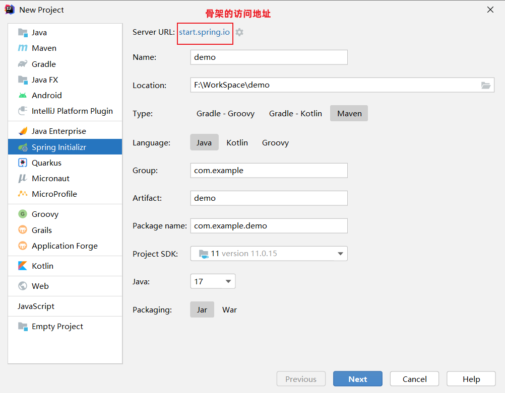 我们可以通过访问:https://start.spring.io/ ,进入到官方骨架页面