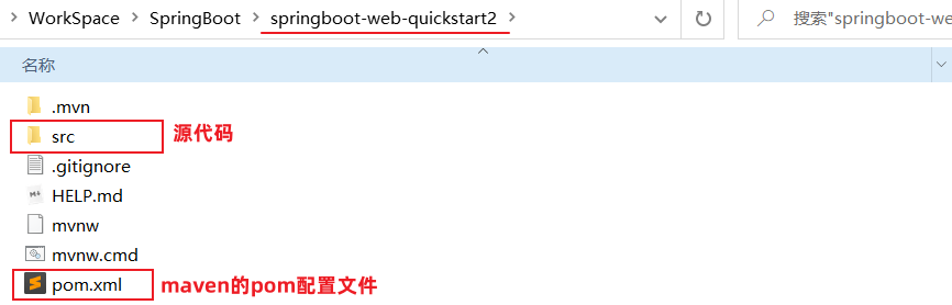结论:不论使用 IDEA 创建 SpringBoot 项目,还是直接在官方网站利用骨架生成 SpringBoot 项目,项目的结构和 pom.xml 文件中内容是相似的。