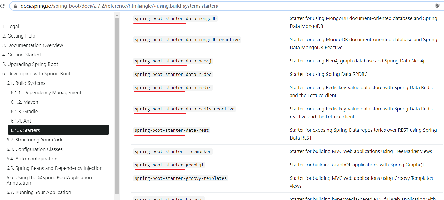 官方地址:https://docs.spring.io/spring-boot/docs/2.7.2/reference/htmlsingle/#using.build-systems.starters