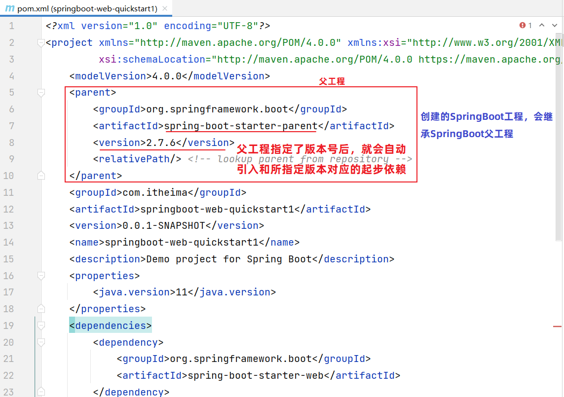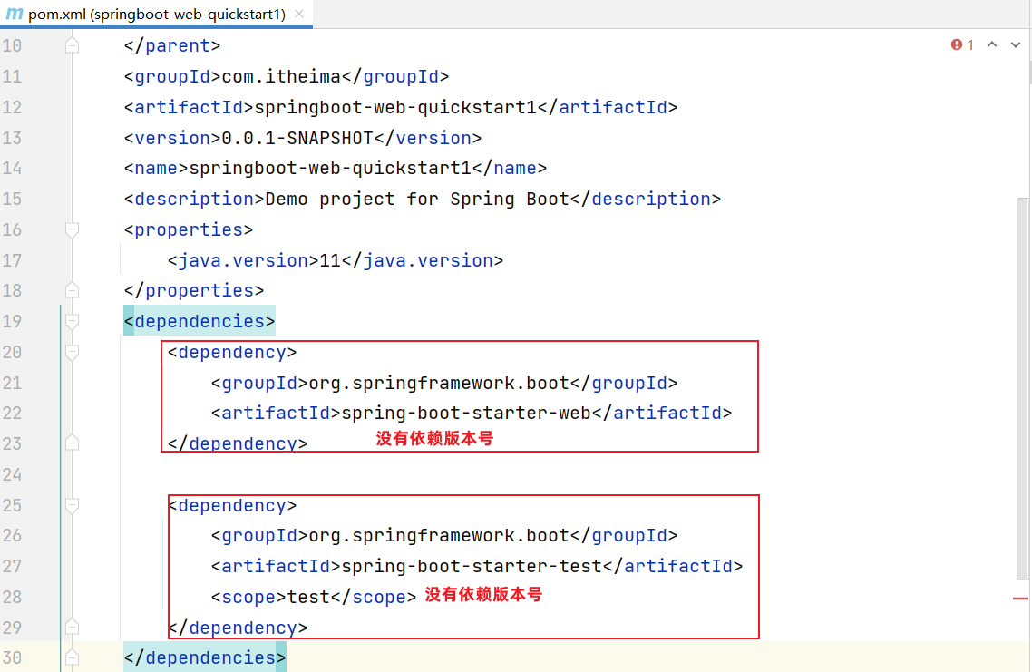 在我们之前开发的 SpringBoot 入门案例中,我们通过 maven 引入的依赖,是没有指定具体的依赖版本号的。