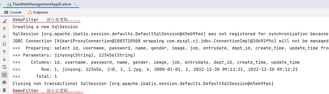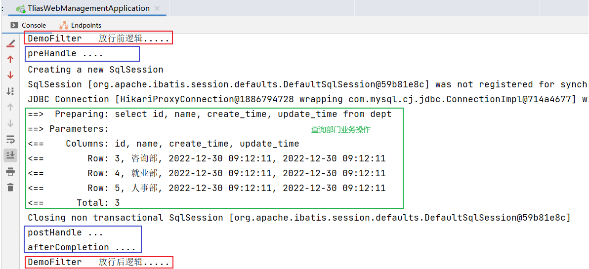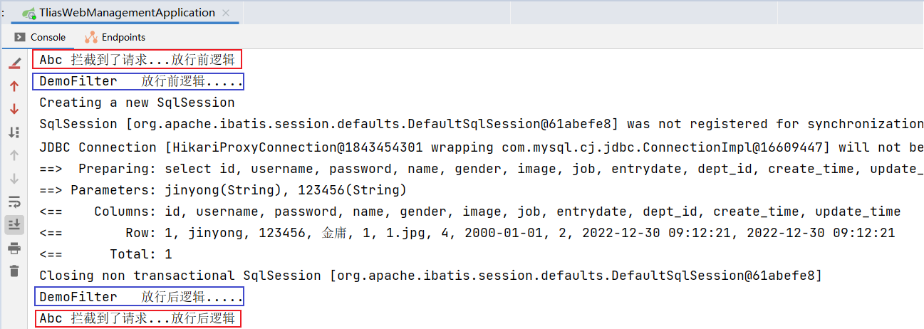 接下来我们就来演示下过滤器和拦截器同时存在的执行流程: