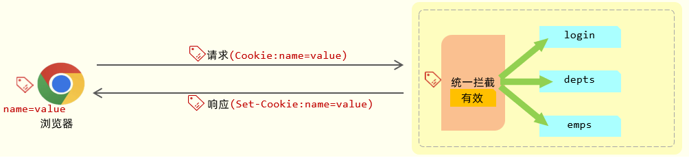 在浏览器发起请求时,需要在服务端进行统一拦截,拦截后进行登录校验。