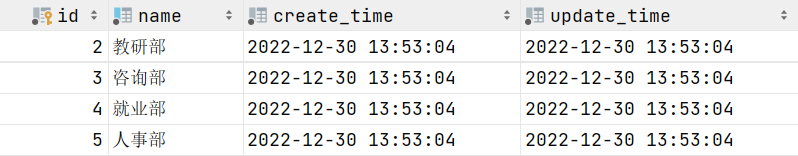 先执行根据 id 删除部门的操作,这步执行完毕,数据库表 dept 中的数据就已经删除了。