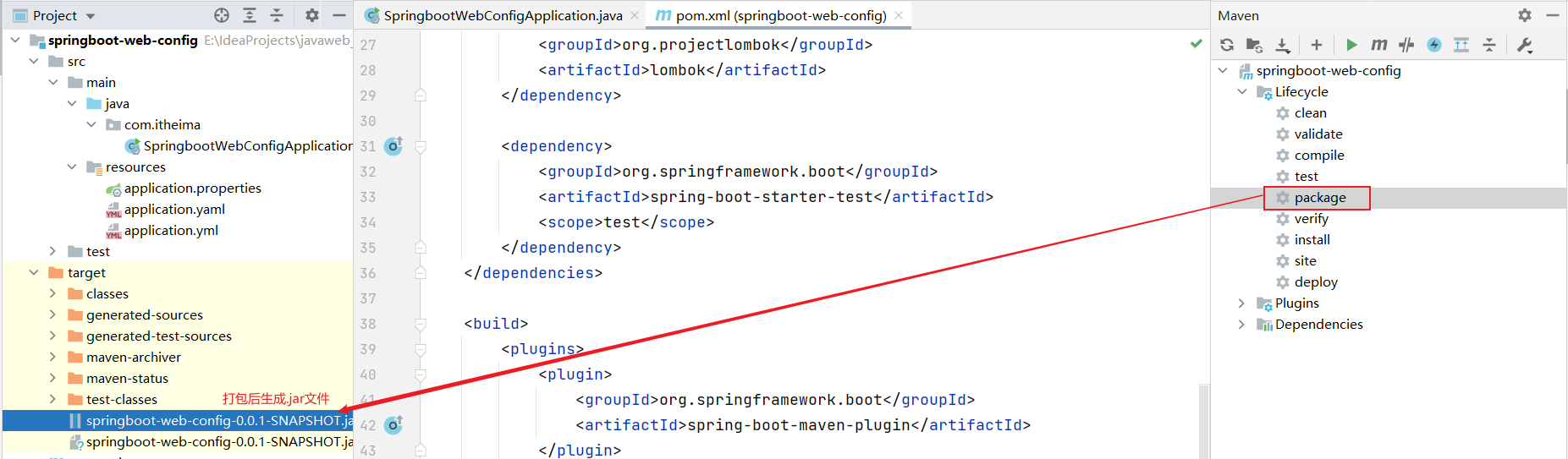 Springboot项目进行打包时,需要引入插件 spring-boot-maven-plugin (基于官网骨架创建项目,会自动添加该插件)