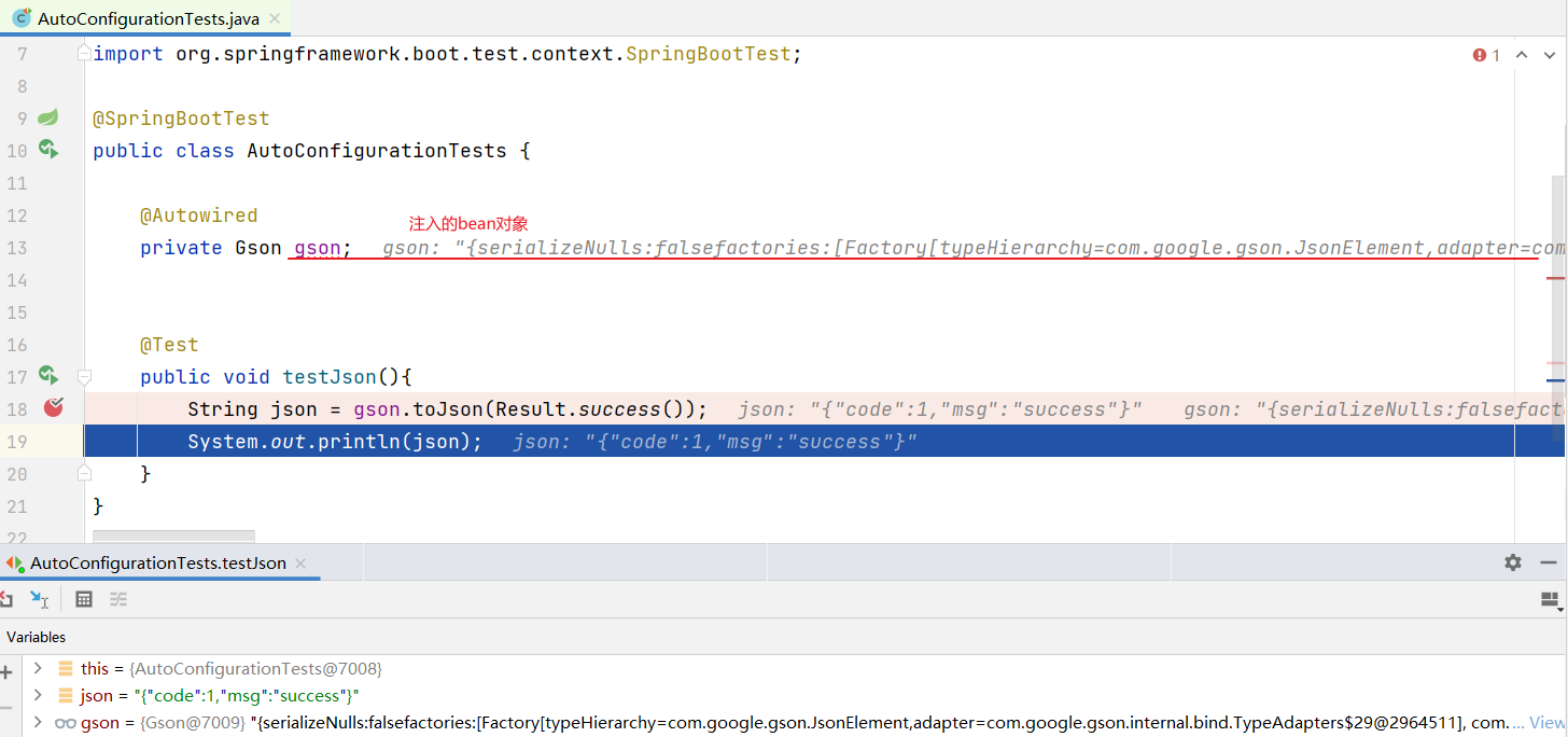 通过断点可以看到自动注入AliOSSUtils的bean对象: