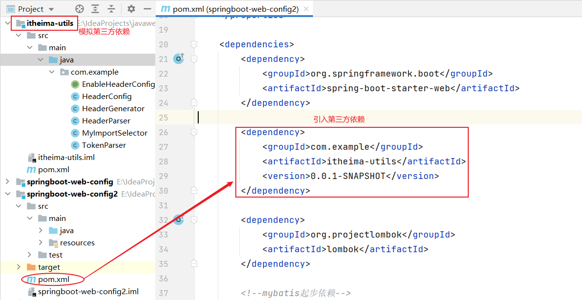 在starter中引入autoconfigure (我们使用时只需要引入starter起步依赖即可)