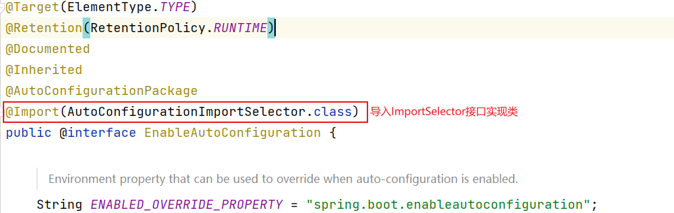 它封装了一个@Import注解,Import注解里面指定了一个ImportSelector接口的实现类。