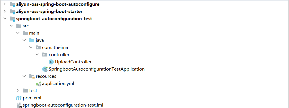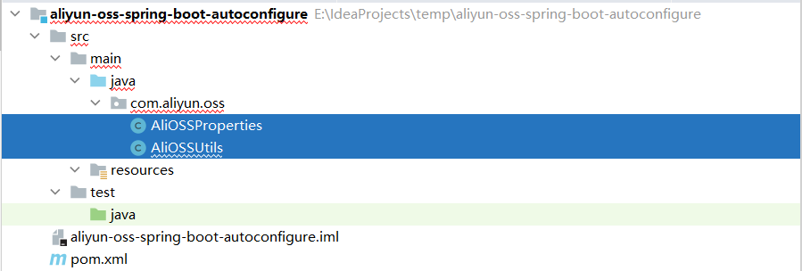 我们将之前案例中所使用的阿里云OSS部分的代码直接拷贝到autoconfigure模块下,然后进行改造就行了。