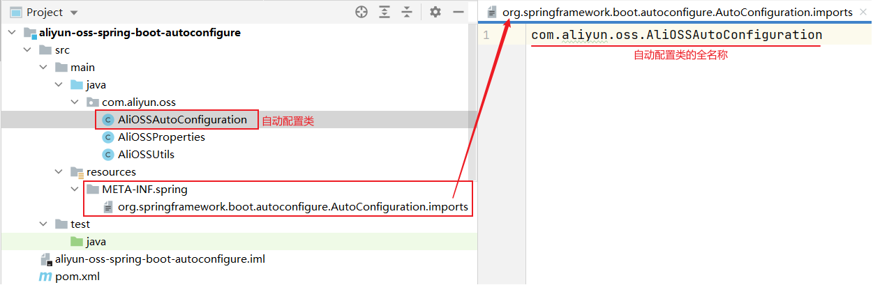 下面我们就要定义一个自动配置类了,在自动配置类当中来声明AliOSSUtils的bean对象。