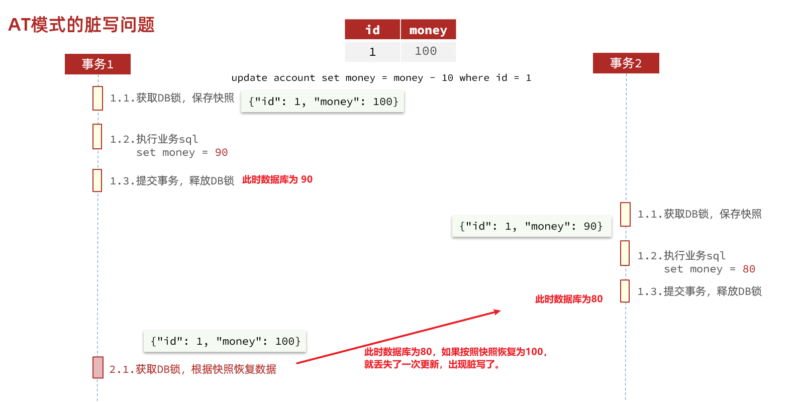 举例,一个扣减用户余额的业务。假设账户A原来余额是100,需要余额扣减30元。