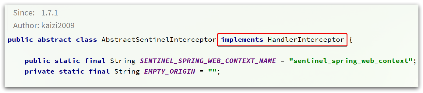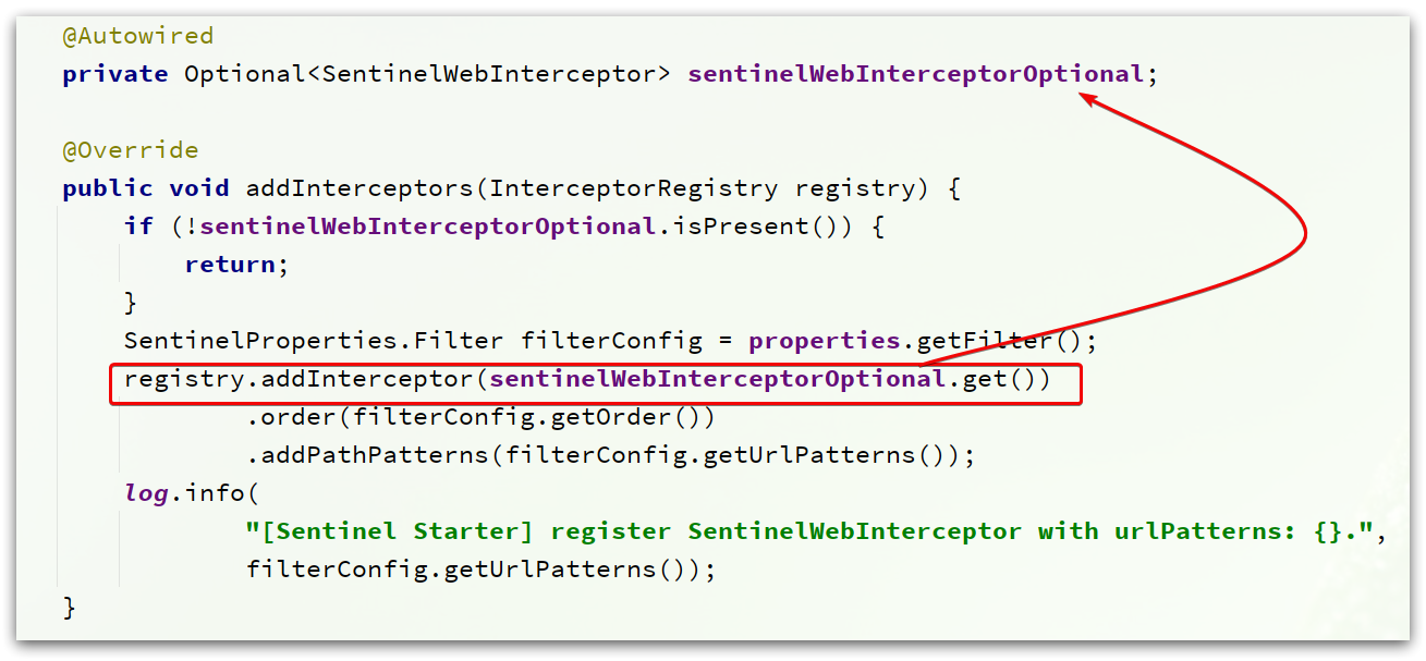 可以看到这里配置了一个SentinelWebInterceptor的拦截器。