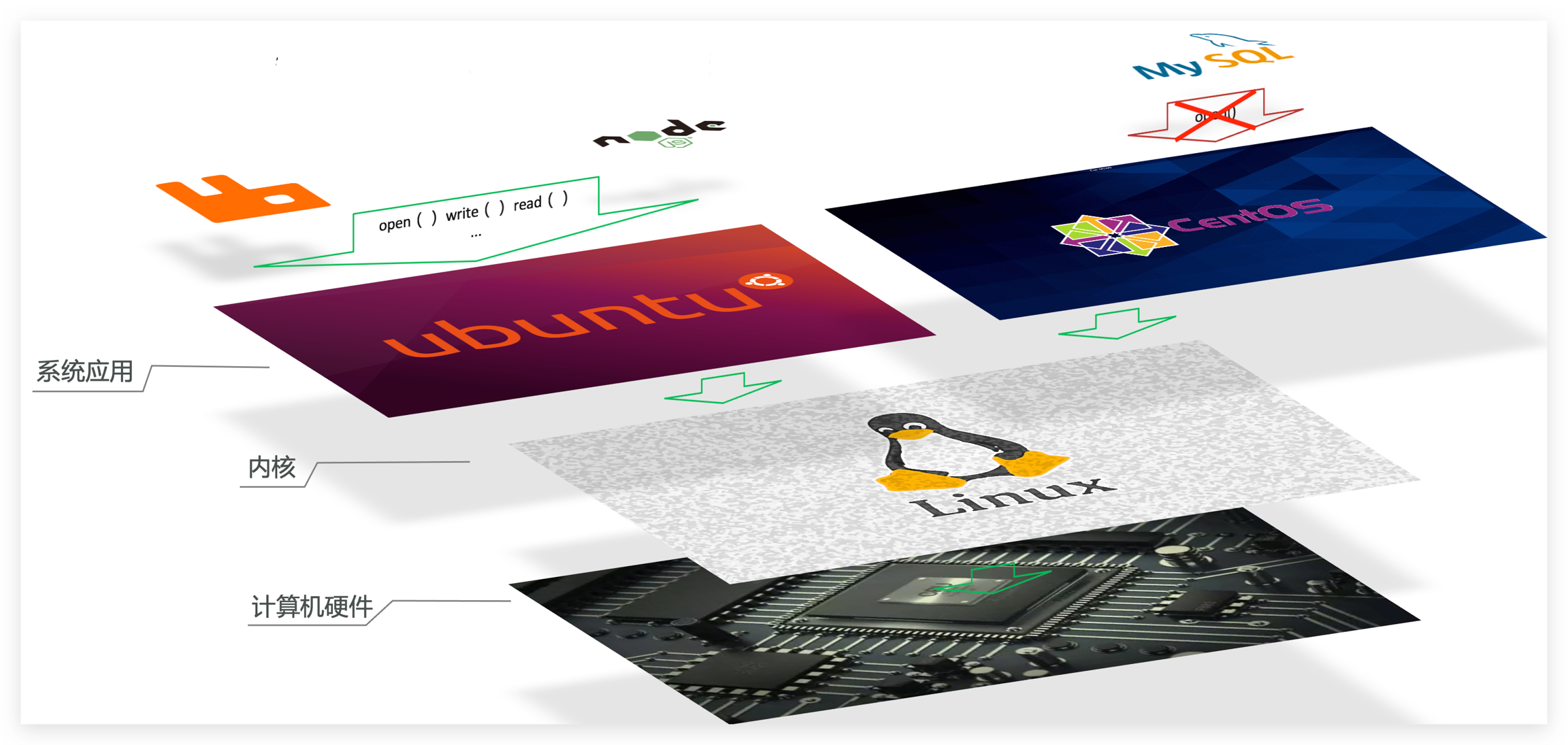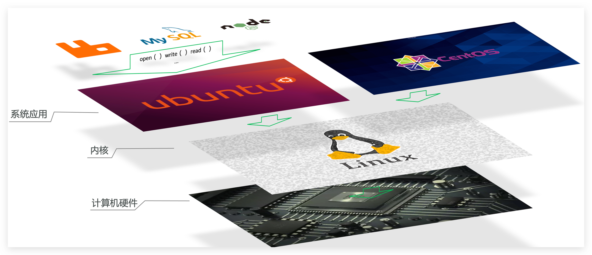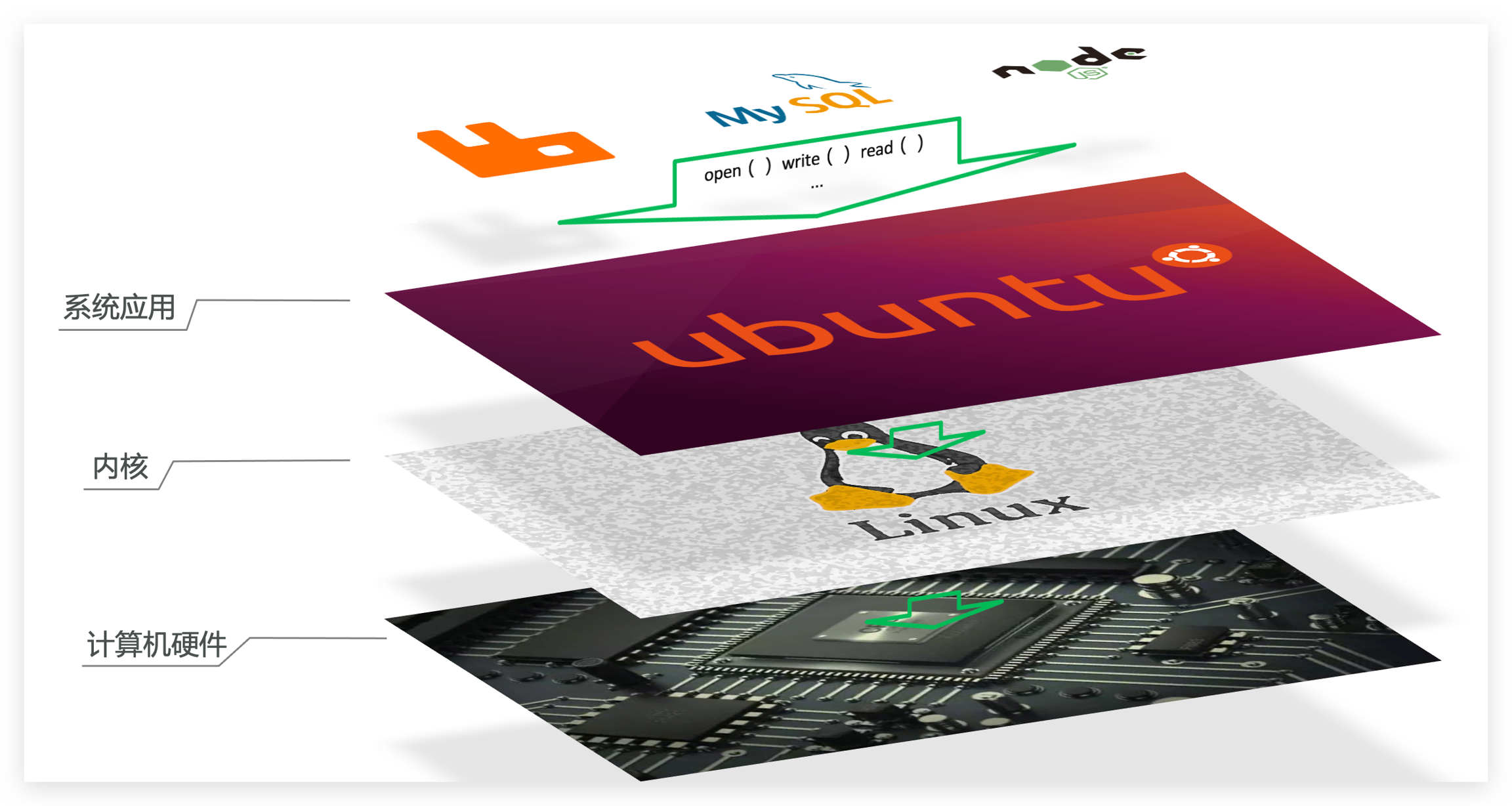 要解决不同操作系统环境差异问题,必须先了解操作系统结构。以一个Ubuntu操作系统为例,结构如下: