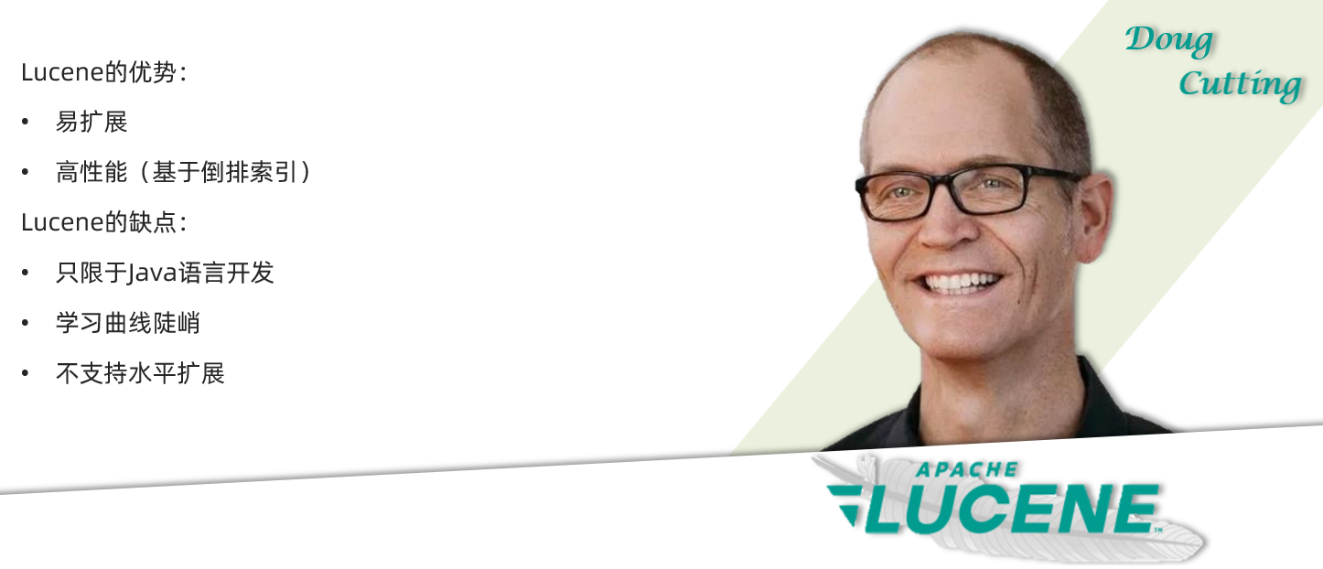Lucene是一个Java语言的搜索引擎类库,是Apache公司的顶级项目,由DougCutting于1999年研发。官网地址:https://lucene.apache.org/ 。