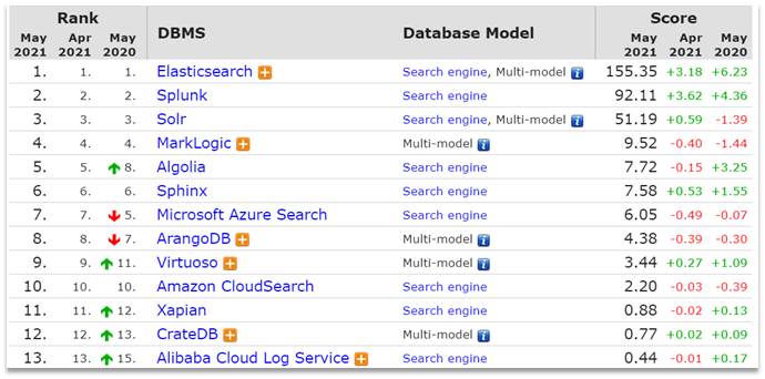 虽然在早期,Apache Solr是最主要的搜索引擎技术,但随着发展elasticsearch已经渐渐超越了Solr,独占鳌头: