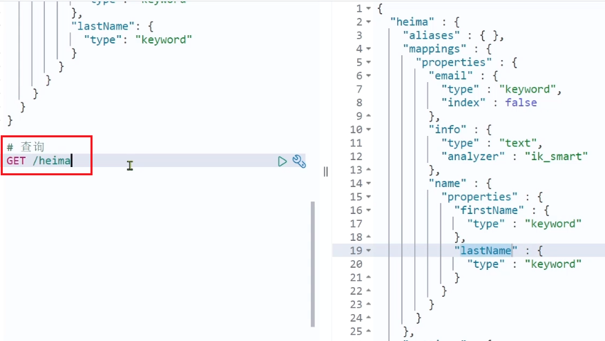 数据库的表会有约束信息,用来定义表的结构、字段的名称、类型等信息。因此,索引库中就有映射(mapping) ,是索引中文档的字段约束信息,类似表的结构约束。