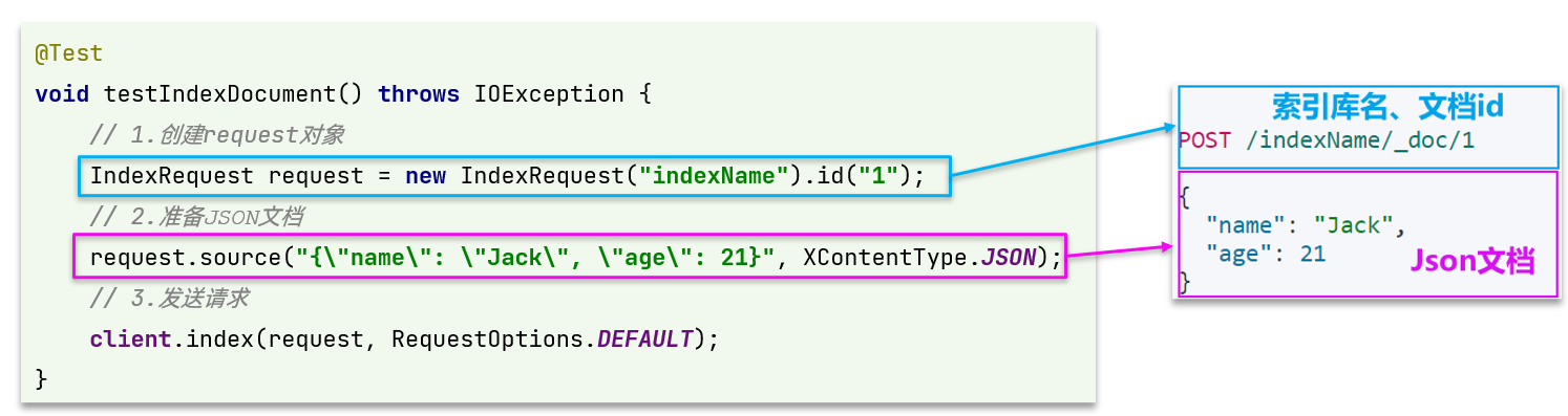 发送请求。调用RestHighLevelClient#.xxx()方法,xxx是index、get、update、delete、bulk