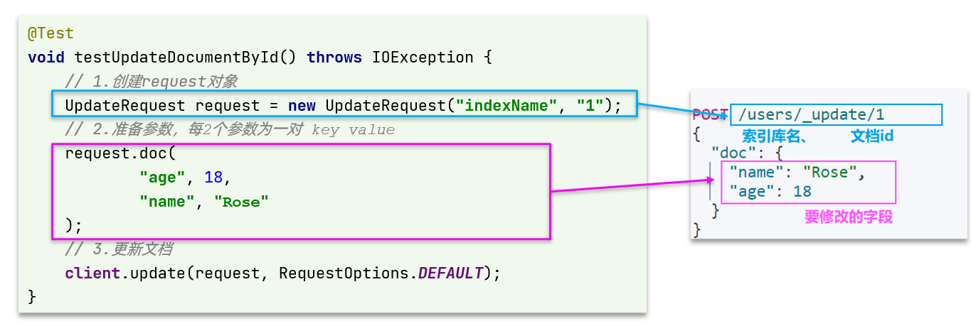 1)准备Request对象。这次是修改,所以是UpdateRequest