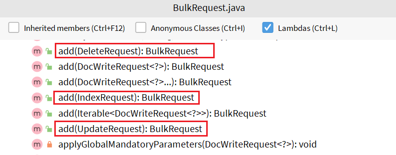 创建XxxRequest。XXX是Index、Get、Update、Delete、Bulk