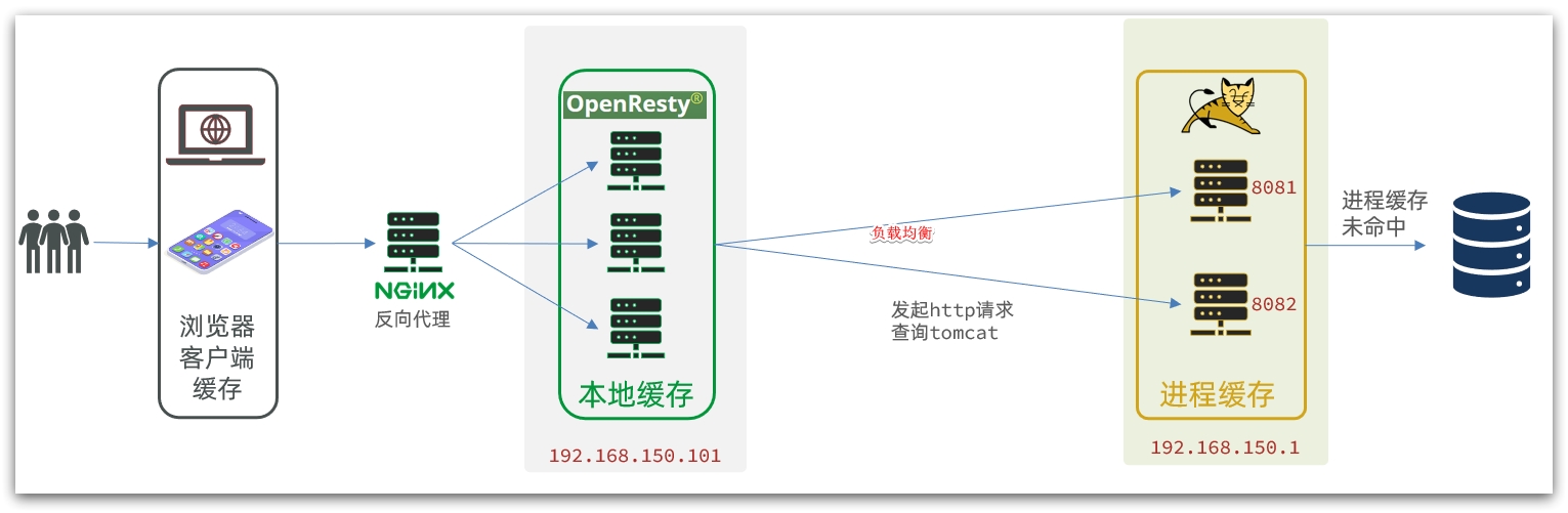 一个是在nginx中编写业务,实现nginx本地缓存、Redis、Tomcat的查询