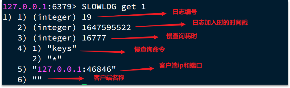 slowlog get [n]:读取n条慢查询日志
