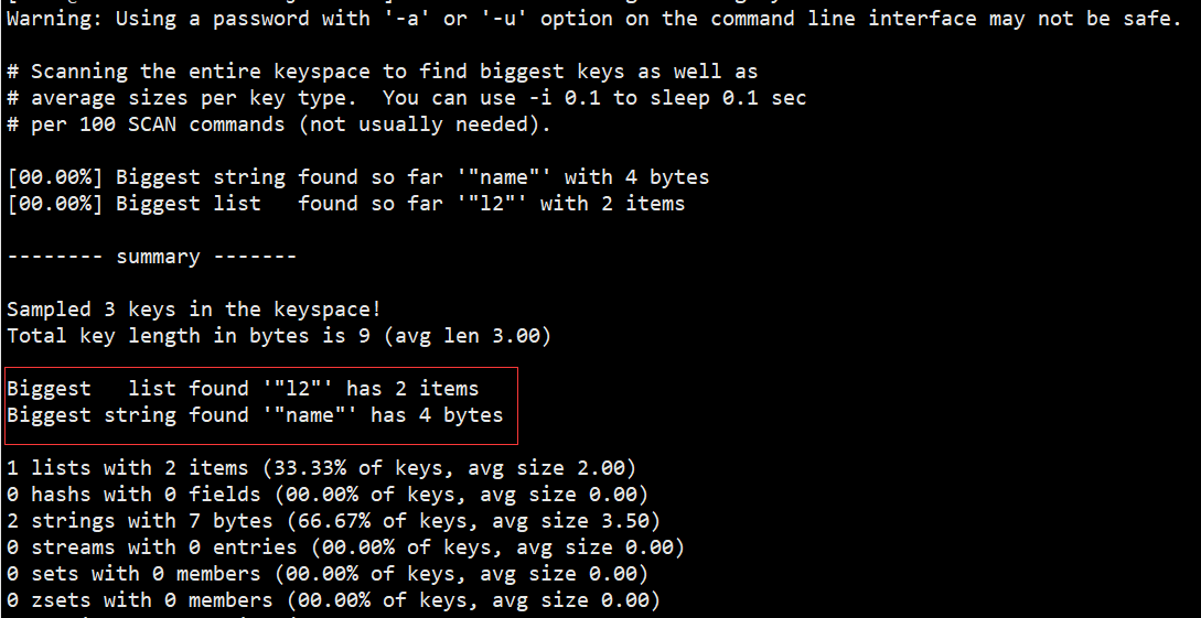 命令:redis-cli -a 密码 --bigkeys