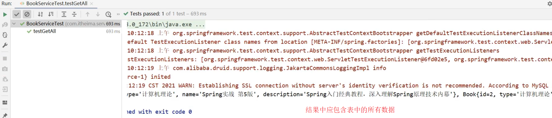 查询所有,测试的结果为: