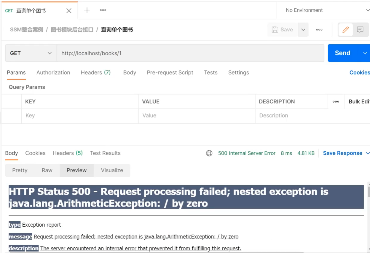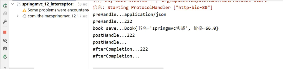 如果发送http://localhost/books/100会发现拦截器没有被执行,原因是拦截器的addPathPatterns方法配置的拦截路径是/books,我们现在发送的是/books/100,所以没有匹配上,因此没有拦截,拦截器就不会执行。