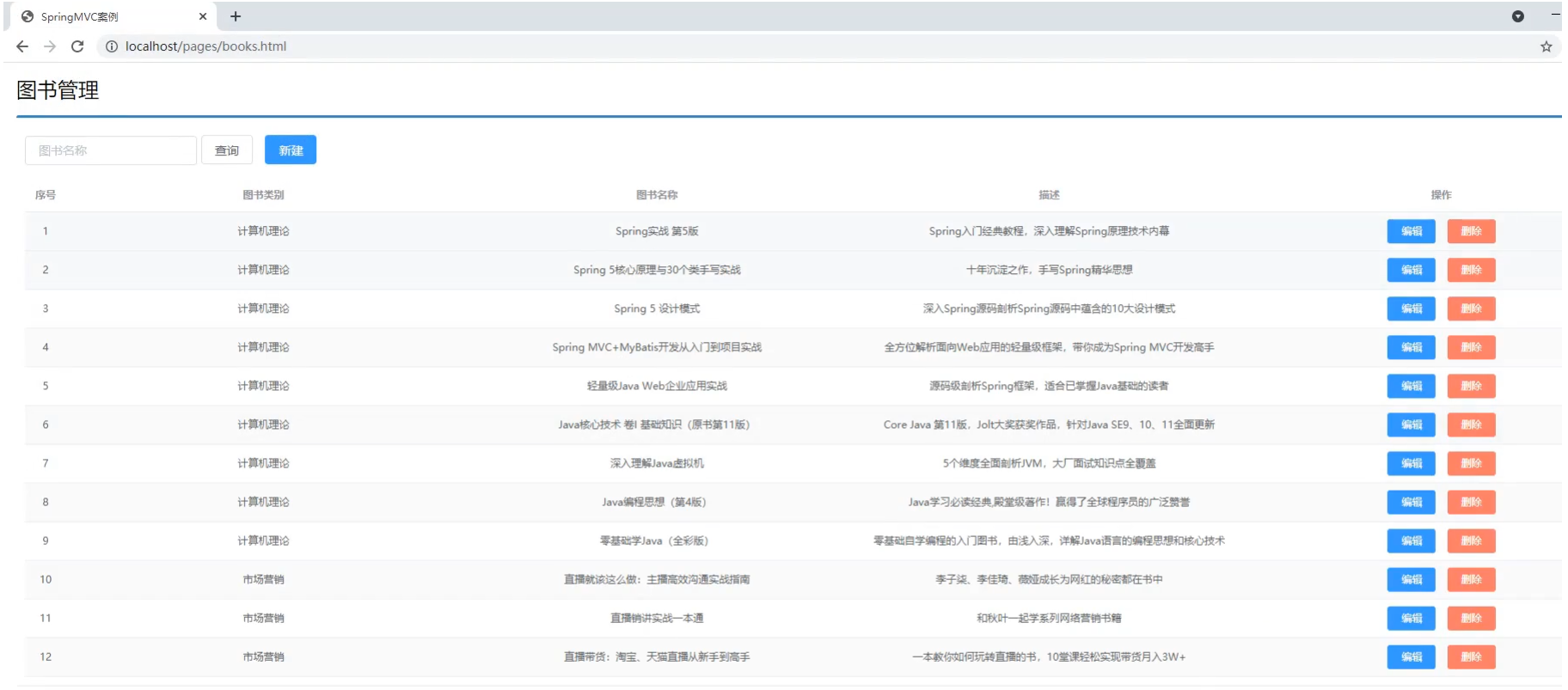 对于图书模块的增删改查就已经完成了编写,我们可以从后往前写也可以从前往后写,最终只需要能把功能实现即可。